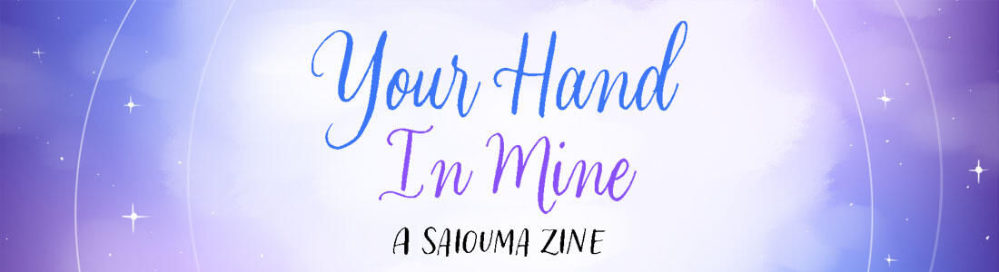 Your Hand in Mine is a Saiouma zine exploring the changing nature of the relationship between Kokichi Ouma and Shuichi Saihara!